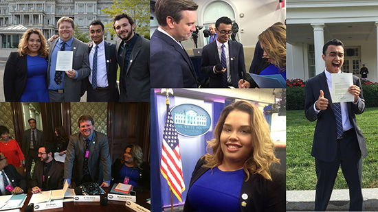 According to Quicke, their visit included a tour of the West Wing and a photo session in the Press Briefing Room with Josh Earnest, assistant to the president and press secretary. This was followed by a lively discussion in the Roosevelt Room on the role of the media, and the importance of student media and college radio.