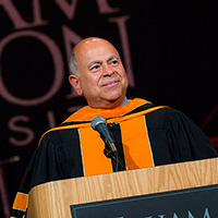 More than 10,000 family and friends filled the Prudential Center to celebrate with the graduates. During the ceremony, the University awarded a posthumous honorary doctor of humane letters degree to the late Kurt Landsberger, a New Jersey businessman, environmental activist, and philanthropist. His son, Allen Landsberger, and grandson, Seth Landsberger, were present to accept the honorary degree.
